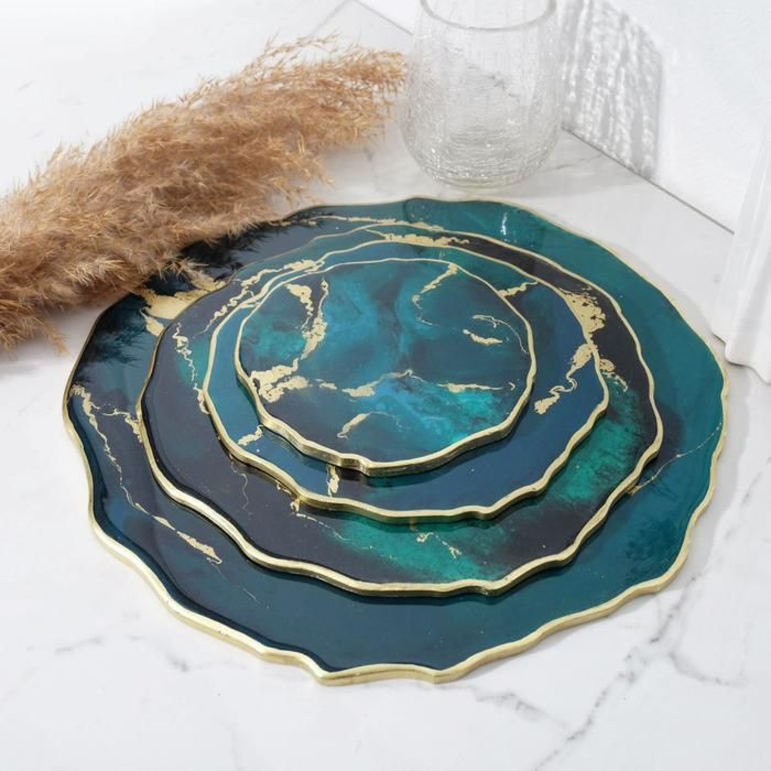 Набор интерьерных подставок "Жеода", цвет изумрудный 6757346