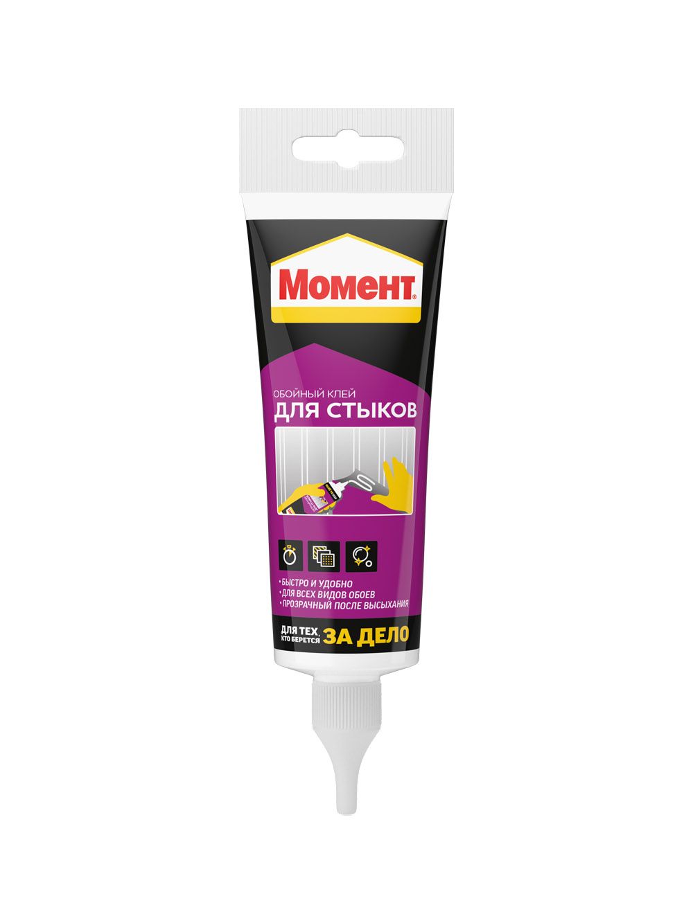 штКлей для стыков обоев «Момент» представляет собой готовый к применению, пастообразный продукт на основе полимерной дисперсии, с высокой степенью адгезии к соединяемым материалам. Используется для дополнительной фиксации стыков и восстановления отклеивающихся участков обоев. Подходит для всех типов обойных покрытий. Средство удобно дозируется с помощью носика-аппликатора.