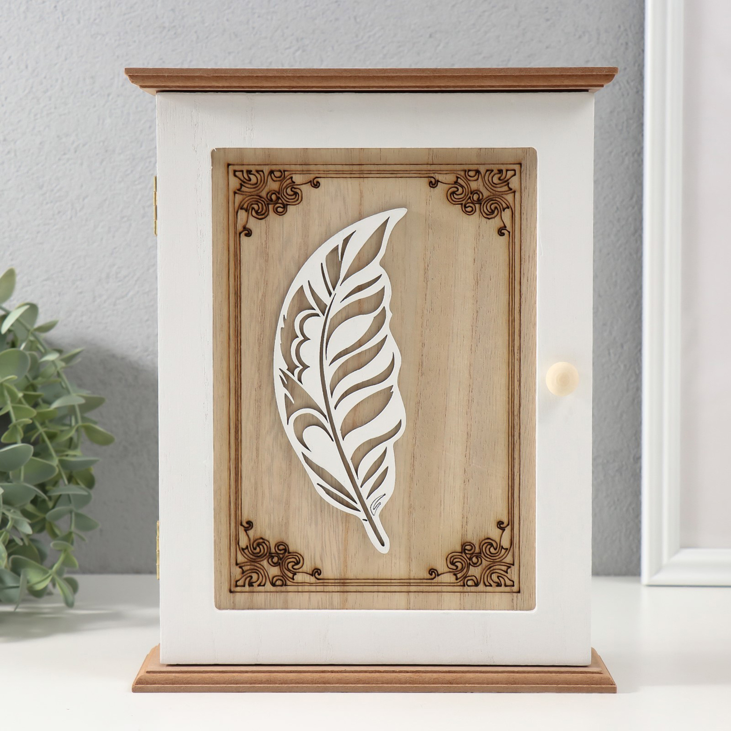 Ключница дерево 6 крючков "Белое пёрышко" 5х20х25,5 см 10534317
