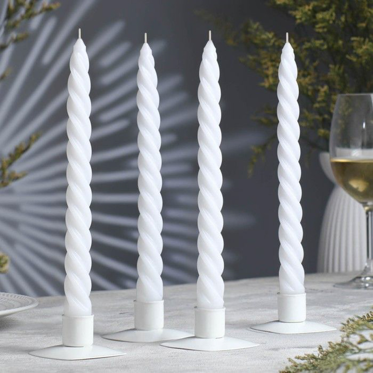 Набор свечей витых, 2,3х 24,5 см, 5 ч, 50 г, 4 штуки, белый 1575436