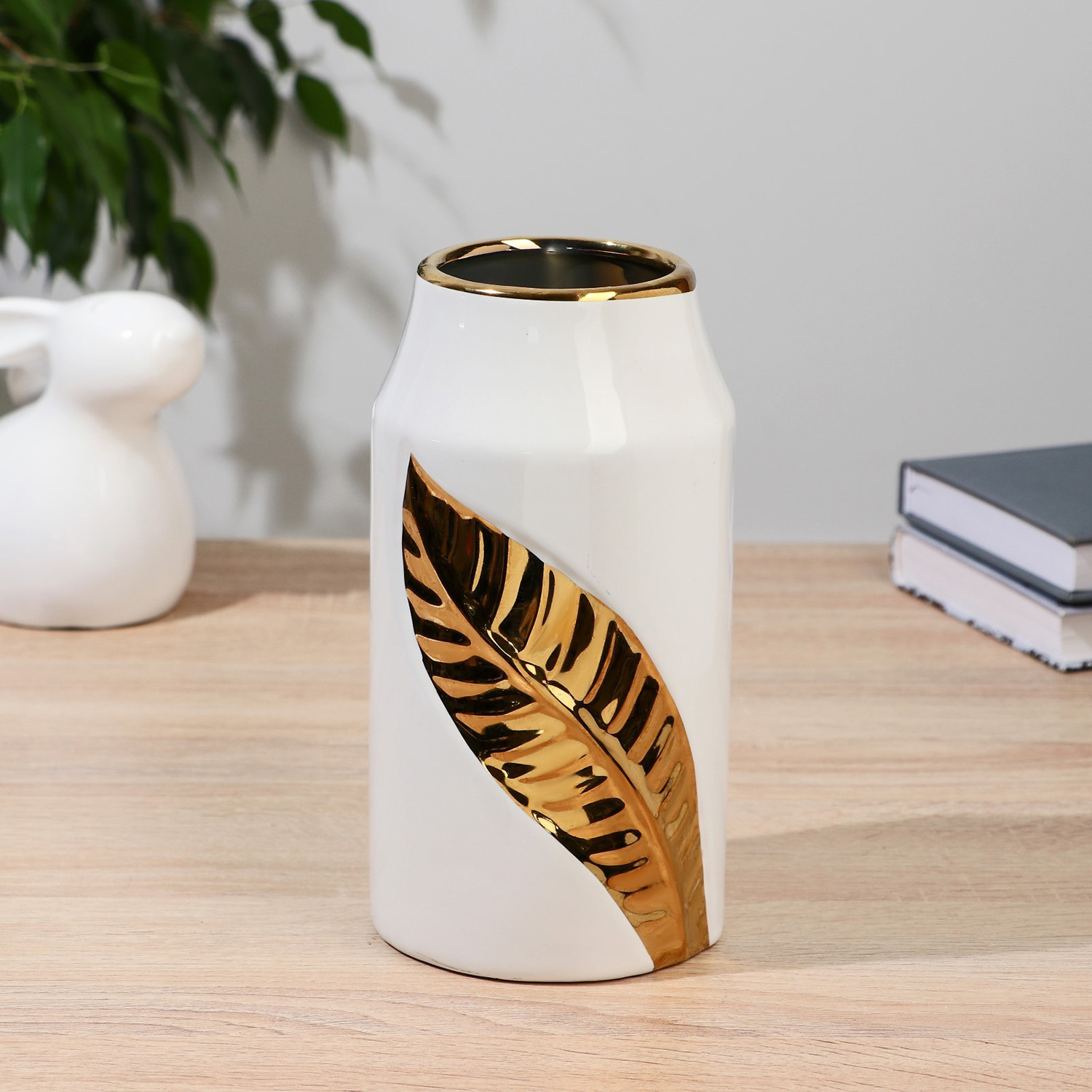 Ваза керамика "Анаит" d-8х10 см h-21 см, золотисто-белый 9499298