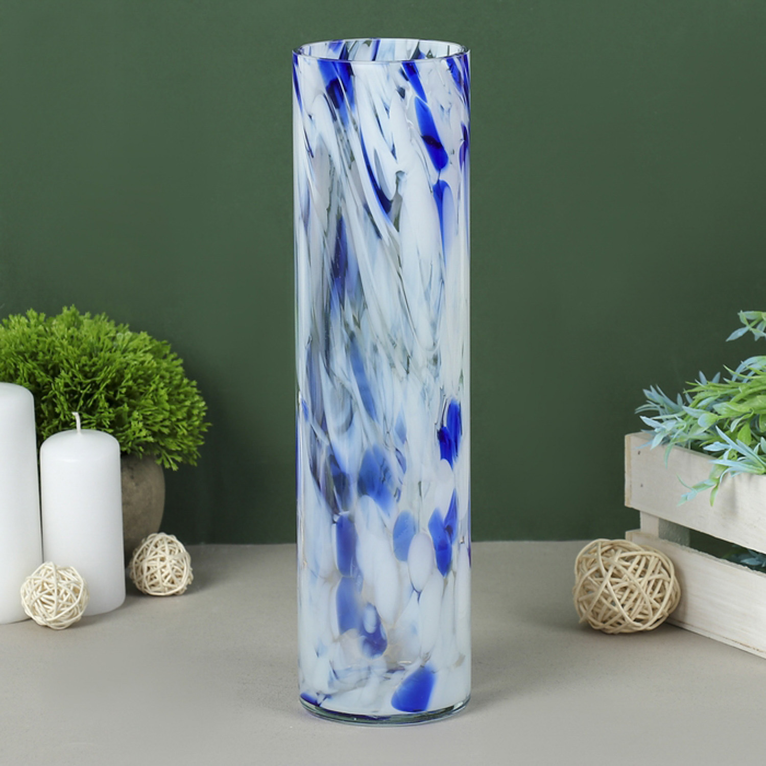 Ваза "Цилиндр" 8х30 см, бело-синяя 2176645