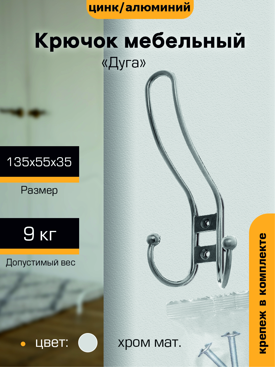 Крючок мебельный ХРОМ матовый 3-рожковый 208А(индивидуальная упаковка) М6614ф "SANBERG" *10/100