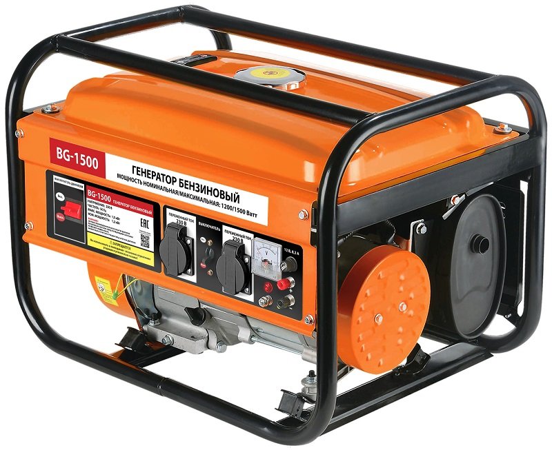 Генератор бензиновый Спец BG-1500, 1.5 кВт, 4-х тактный, бак 15 л, ручной стартер