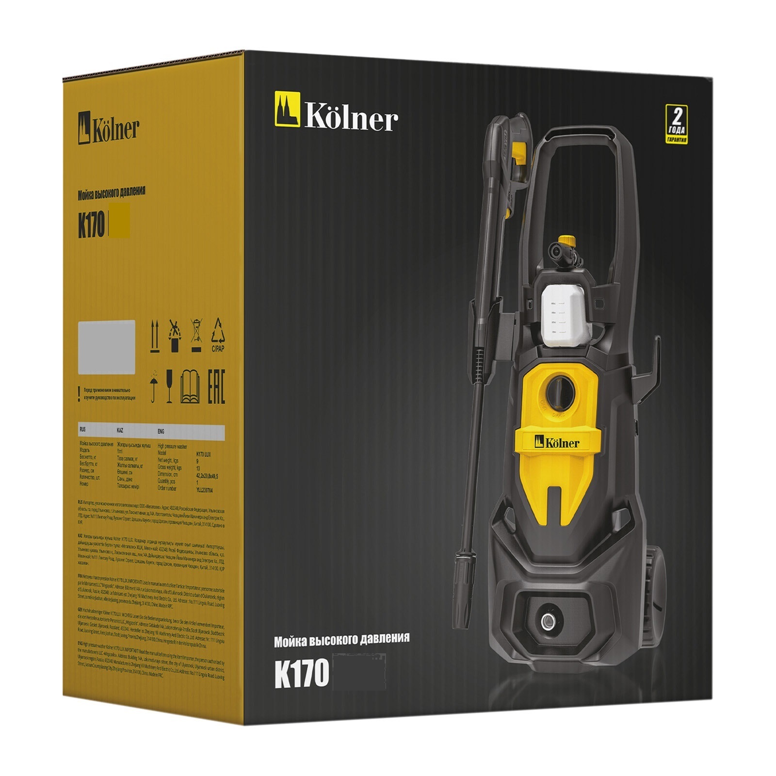 Мойка высокого давления 2500Вт 450л/ч 170/120 бар шланг 8м самовсасывающая Auto stop K170 Kolner *1