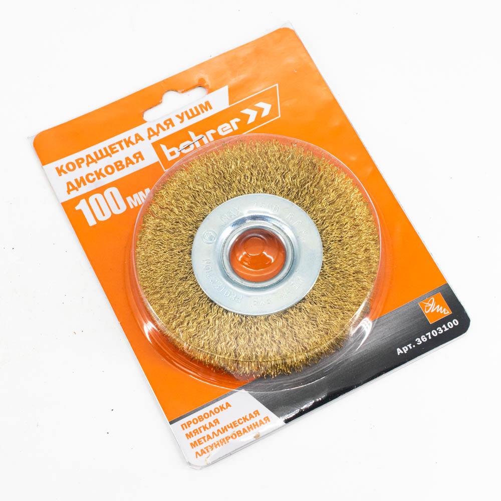 Щетка-крацовка "плоская" латунирован.круч.провол.0,3мм100мм 22,2мм для УШМ арт.36703100 Bohrer*1/100