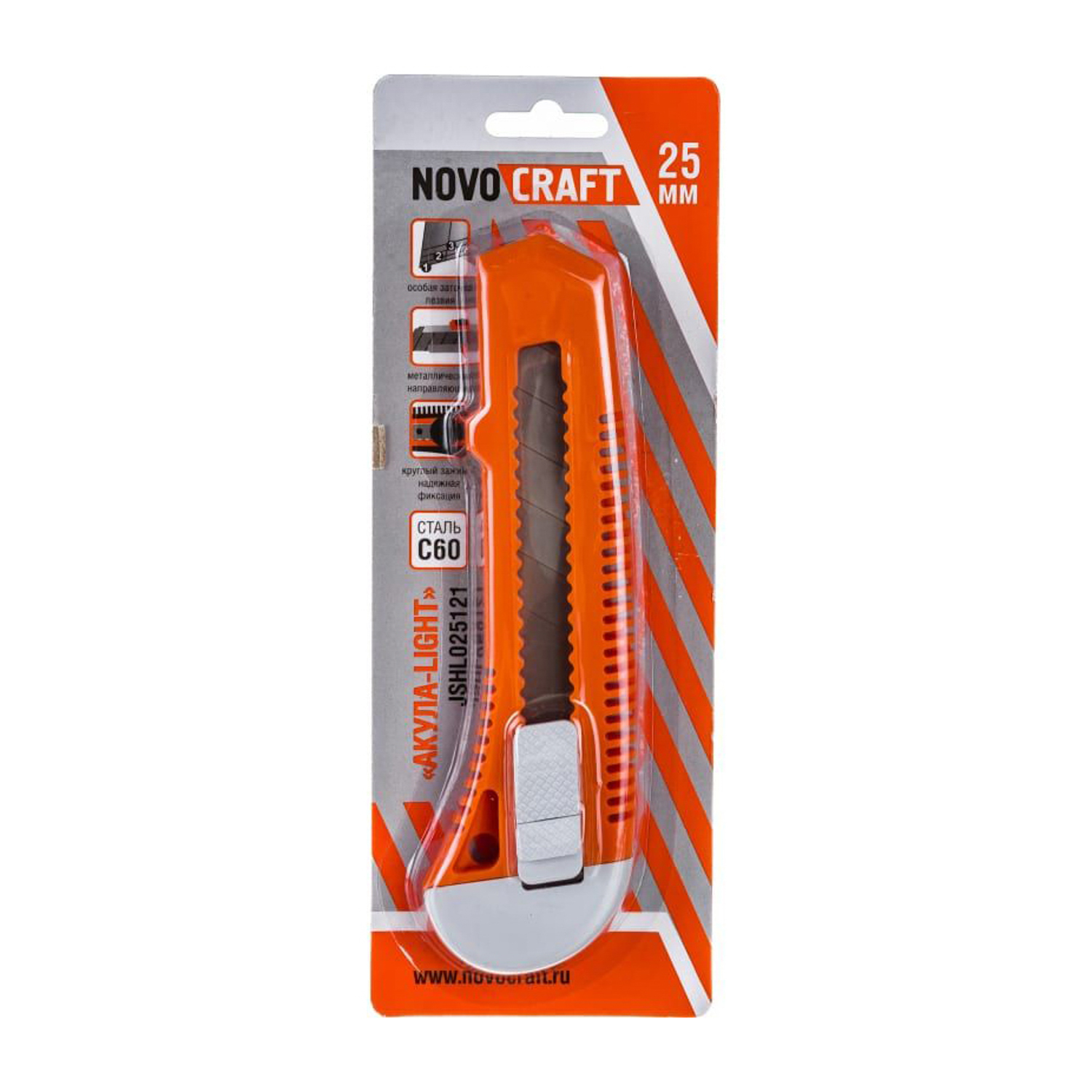 Нож строительный 25мм корпус пластик JSHL025121 АКУЛА-light NovoCRAFT*1/12/144