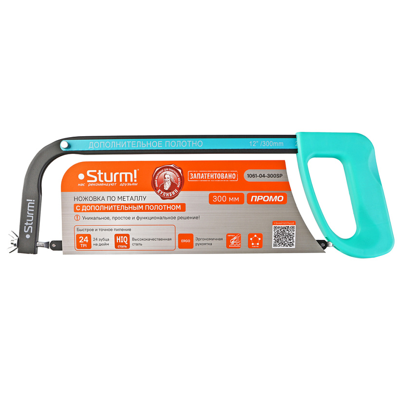 Ножовка по металлу 300мм с пластм. ручкой +доп.полотно (арт.1061-04-300SP) STURM *1/12/48
