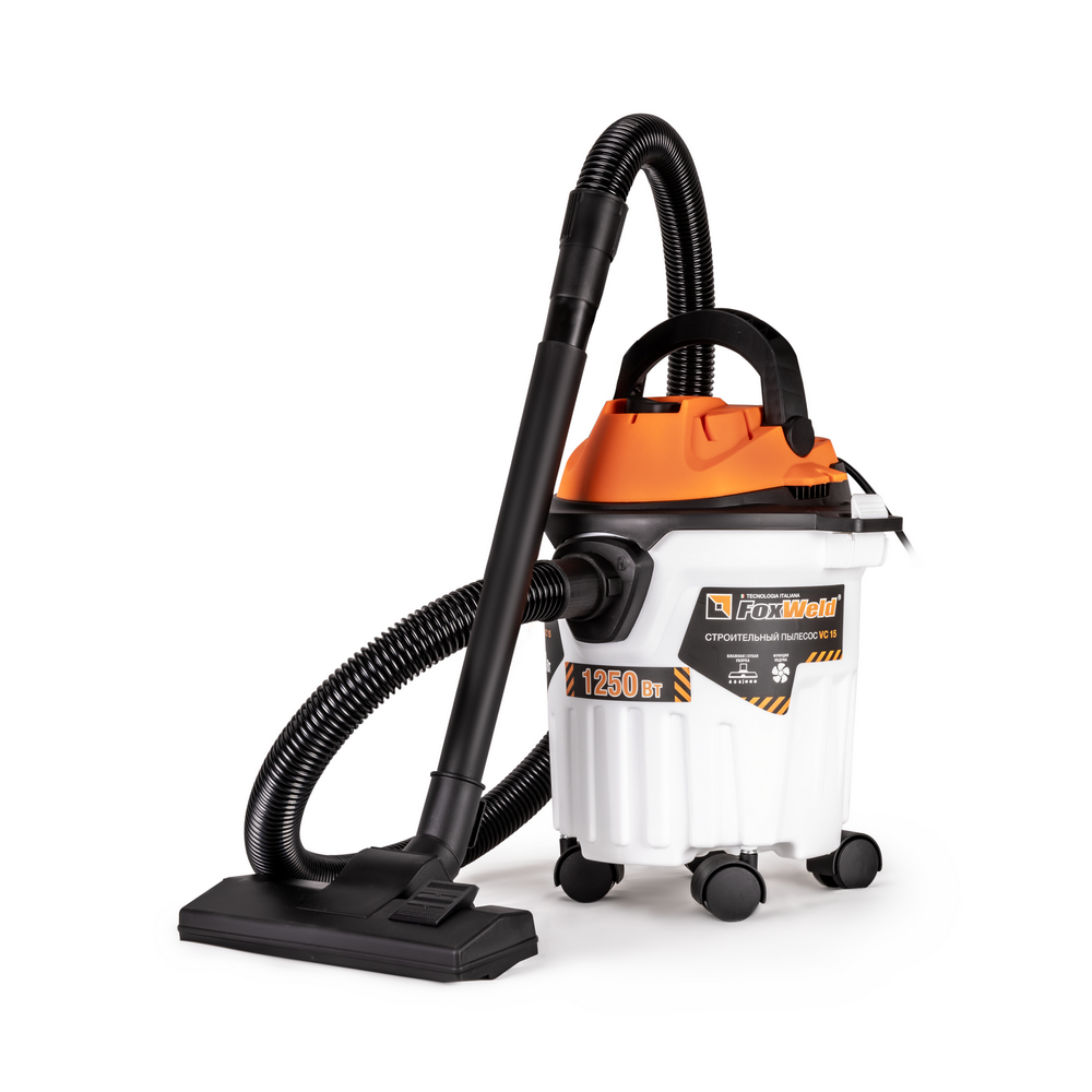 Пылесос строительный 1250Вт объем бака 12л шланг 1,5м d шланга 32мм VC 15 FoxWeld *1