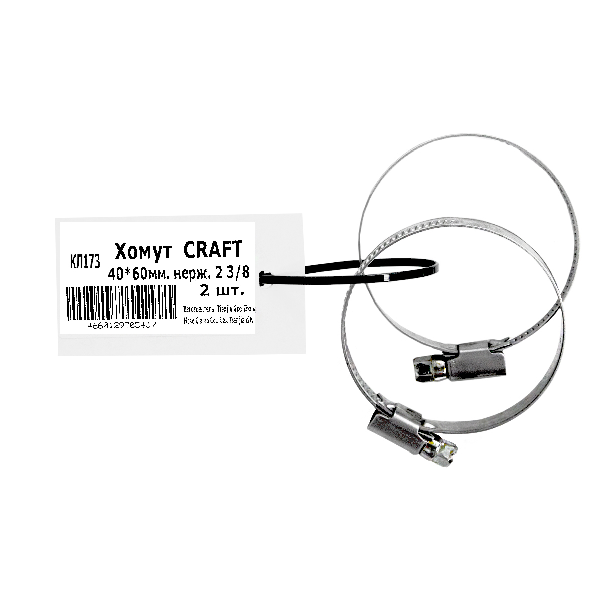 Хомут BROZEX 40-60мм нерж., 2 3/8" (2шт) *10