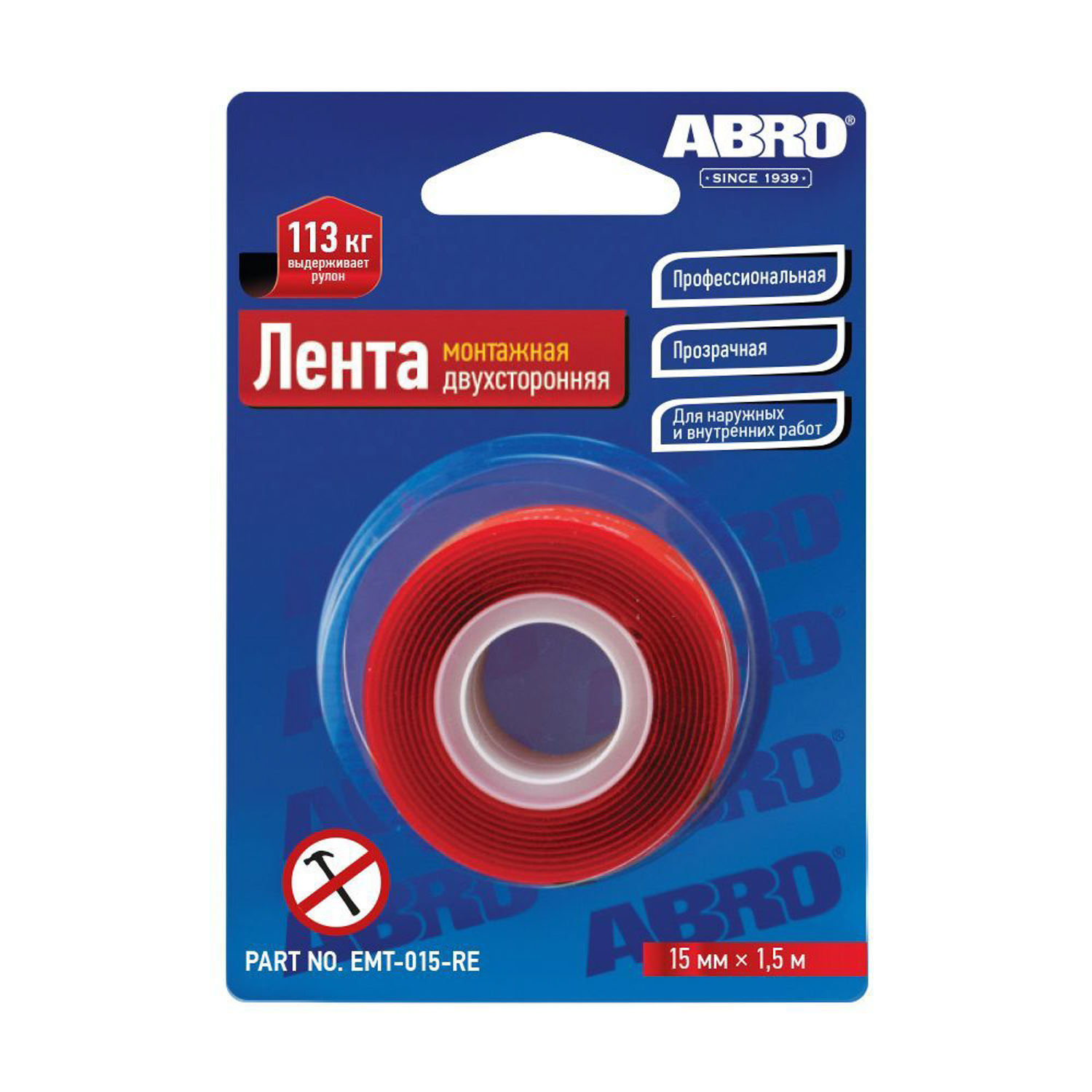 Лента клейкая двусторонняя Профессиональная Прозрачная 15мм х1,51м EMT-015-RE "ABRO" *1/144
