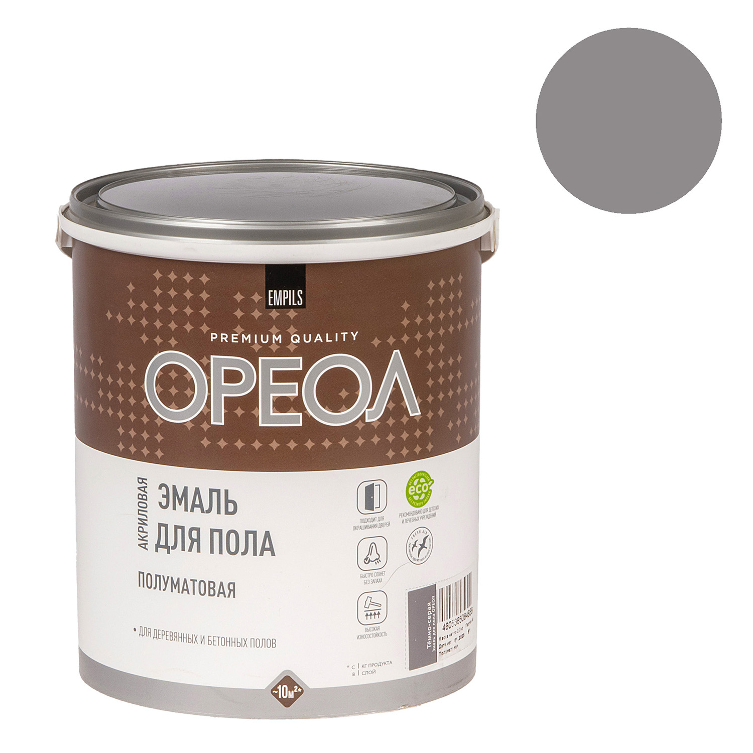 Эмаль акриловая для пола темно-серая полуматовая 2,3 кг Ореол *1/4/216