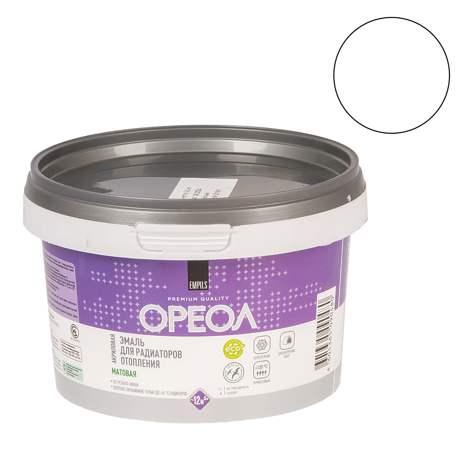 Эмаль для радиаторов акриловая белая матовая 0,5 кг Ореол *1/8/480