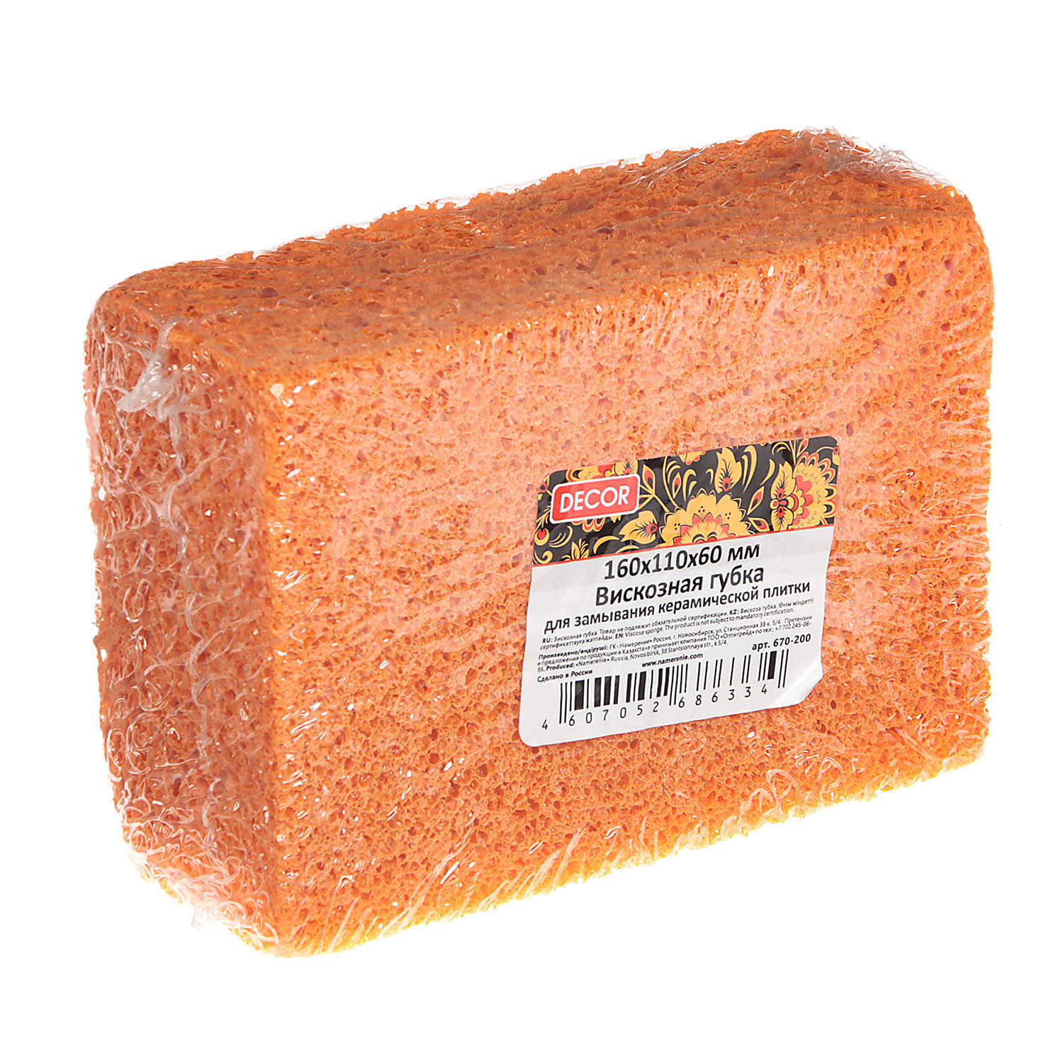 Губка для удаления затирки 160*110*60мм вискозная оранжевая (арт.670-200) *1/10/50
