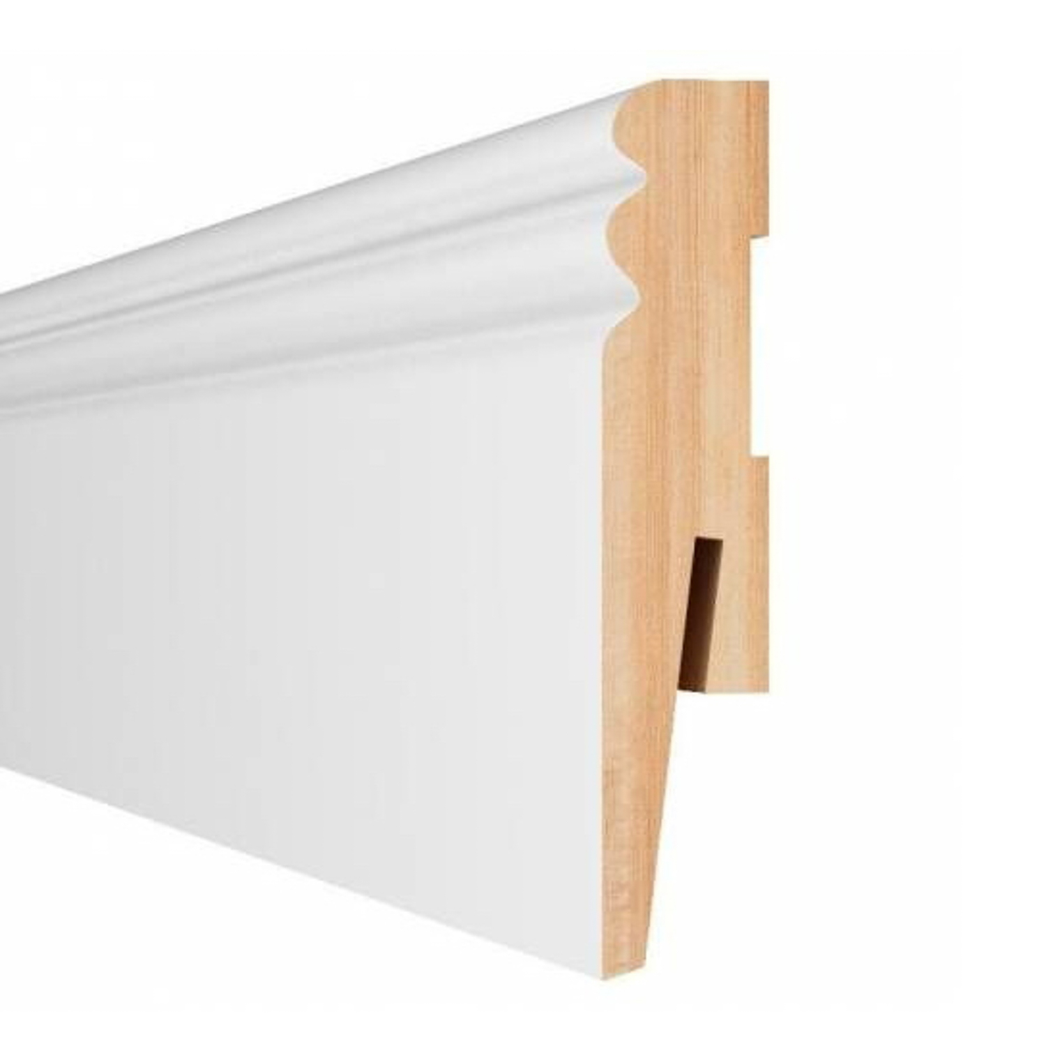 2. Отрезать монтажную планку на 5-7 см больше отрезанного куска плинтуса.