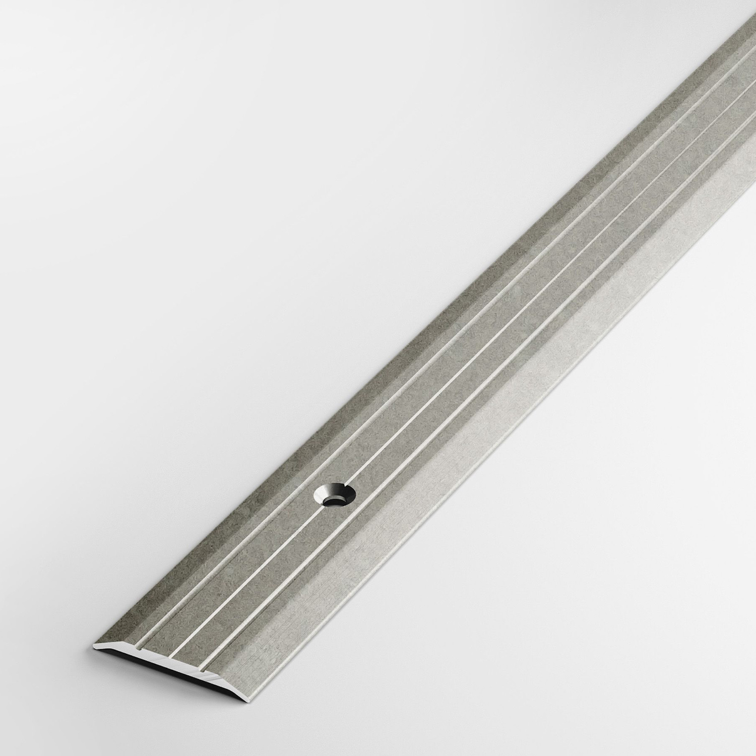 Порог-стык 25х1800 мм Лука ПС 01, бетон сильвер 058 — плоский алюминиевый профиль с двумя желобками для оформления перехода между поверхностями, расположенными на одном уровне. Выполняет декоративную и защитную функции: придает полам завершенный вид, предохраняет кромку ламината, плитки, линолеума и прочих материалов от различных повреждений, не пропускает в стык грязь. Порог имеет открытое крепление. Поставляется в индивидуальной упаковке, с саморезами и дюбелями в комплекте.