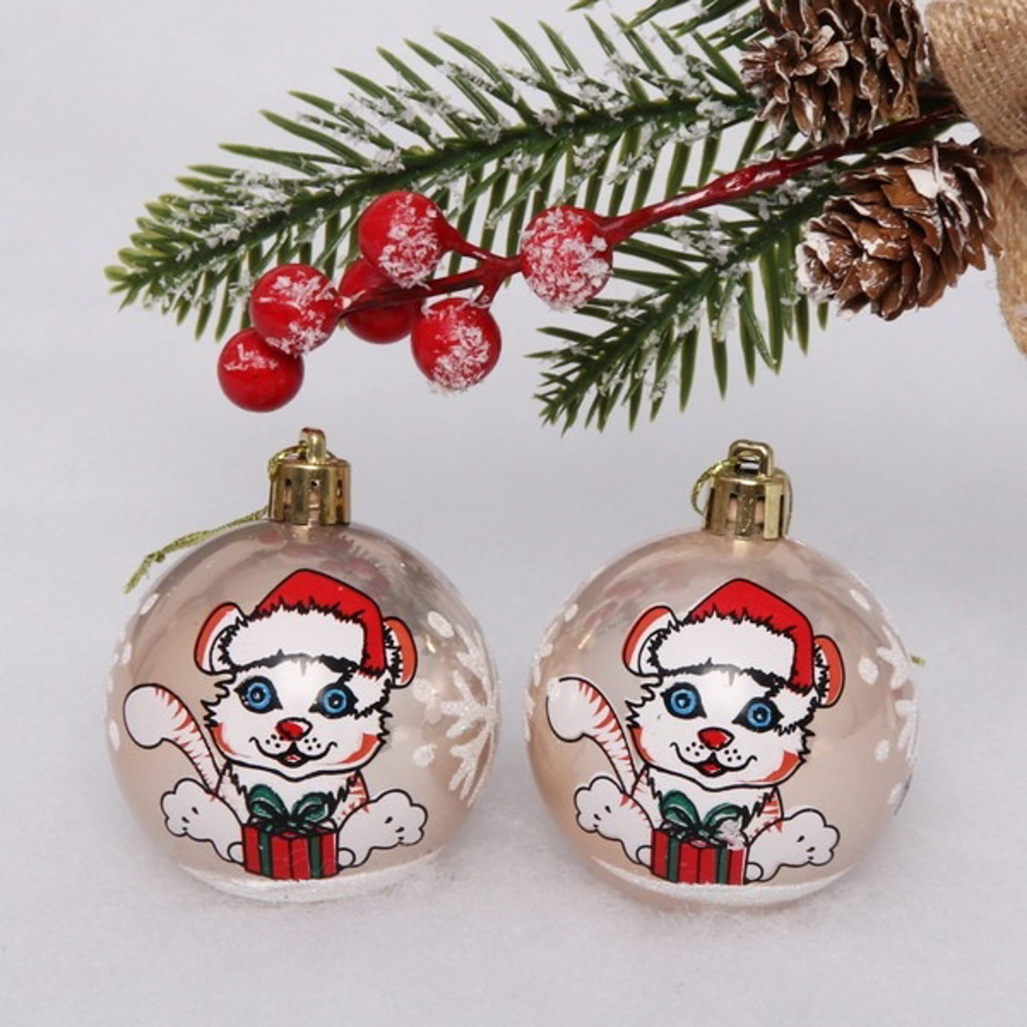Новогодние шары "Тигрёнок" 6 см (набор 2шт), шампань