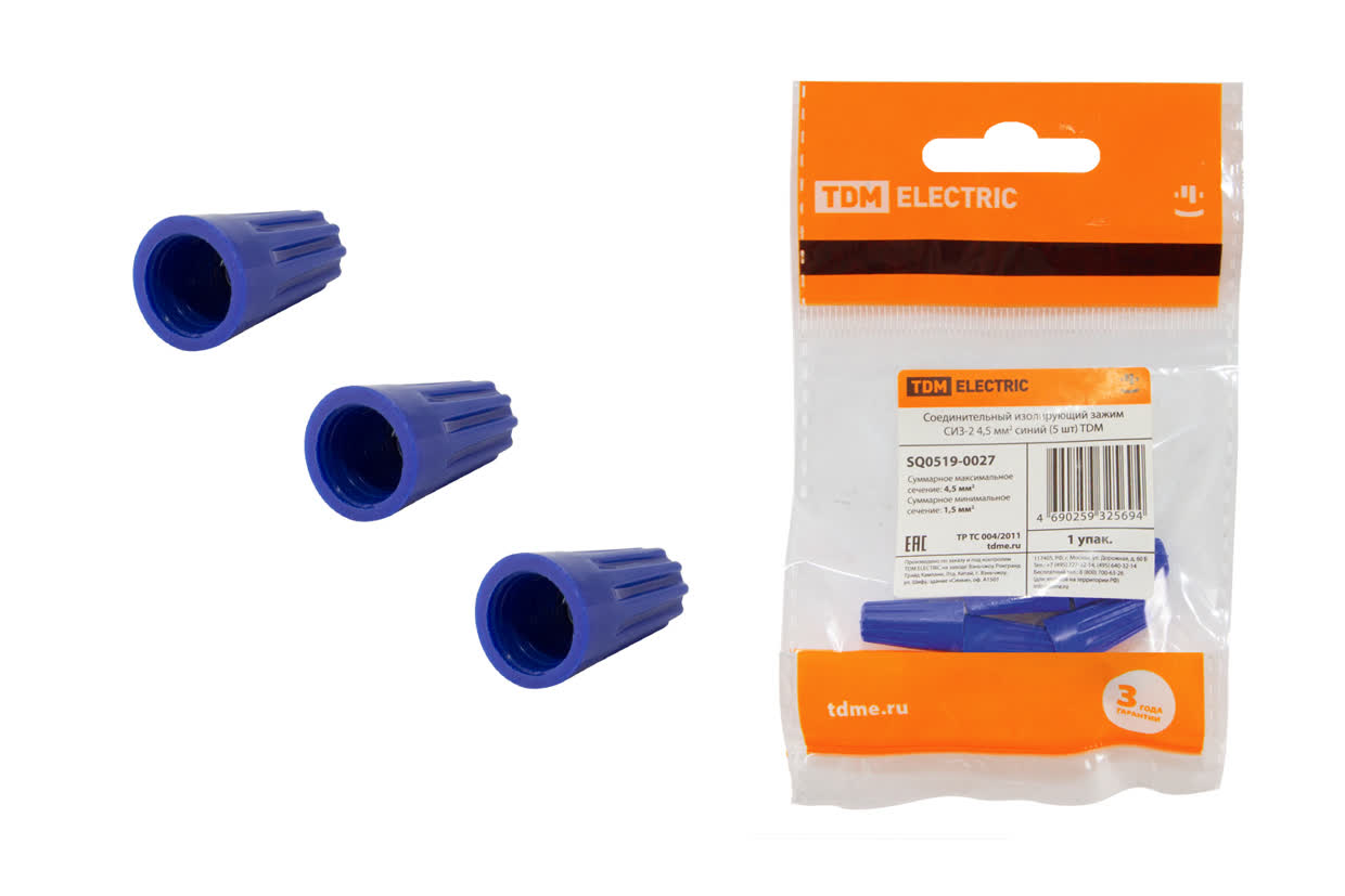 Зажим изолирующий СИЗ-2 4,5мм2 синий (5шт) TDM SQ0519-0027 *1/200