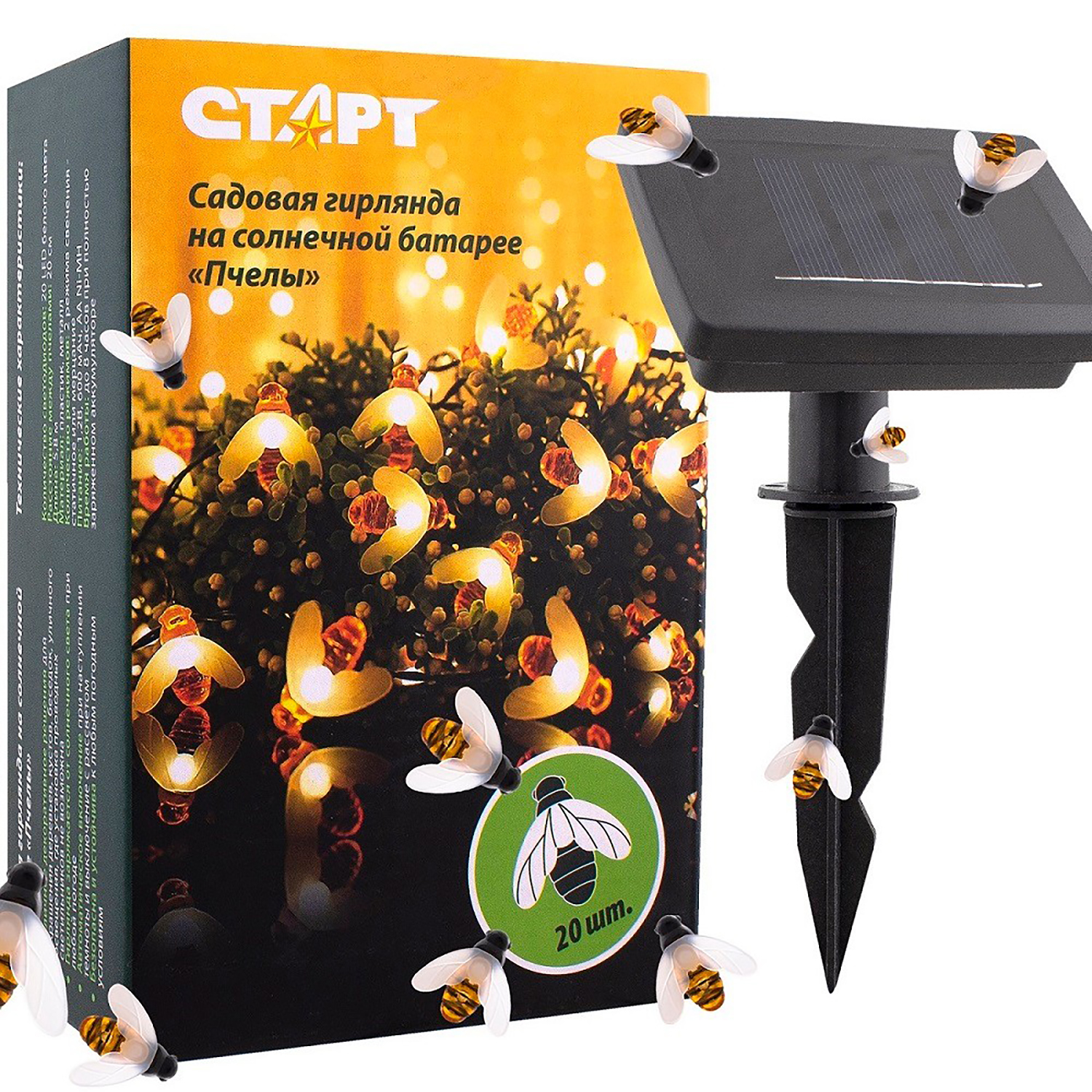Светильник садовый на солнч. батарее. Старт Сад 20LED Пчелы *1/12