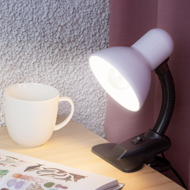 Светильник настольный ЭРА N-212 40Вт Е27 (прищепка) белый N-212-E27-40W-W *1/50