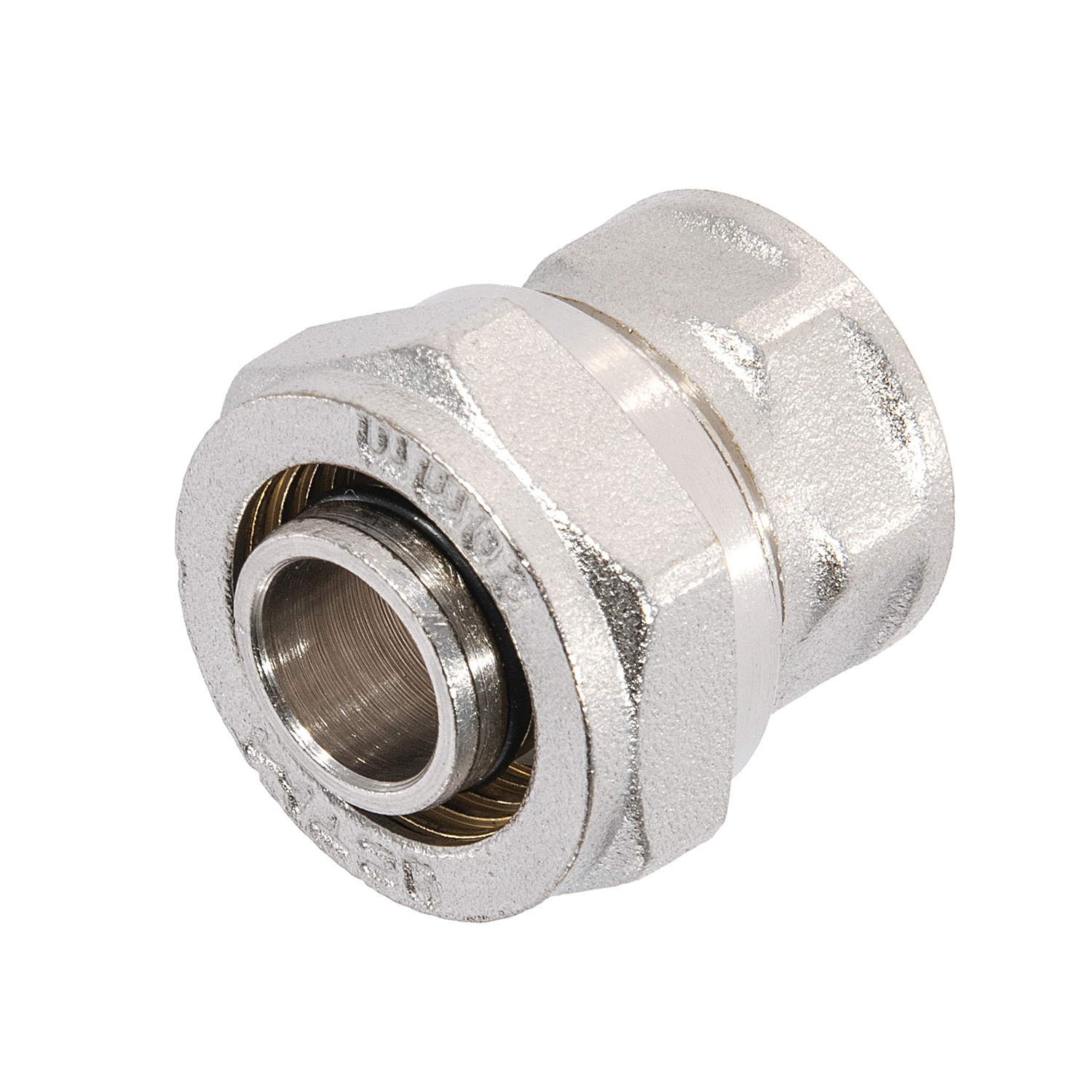Соединение в/р 20х1/2 CTM с внутренней резьбой - обжимной фитинг для соединения металлопластиковой (металлополимерной) трубы и компонента системы с резьбовым подключением. Изготавливается методом горячей штамповки из латуни с последующей термической обработкой и никелированием для предотвращения появления коррозии, механического износа и вредного воздействия агрессивных жидкостей и воздушно-газовых сред. Корпус, накидная гайка и обжимное кольцо соединения изготовлены из латуни, уплотнительные кольца из нетоксичной резины (EPDM), и диэлектрическая прокладка из фторопласта Ф4 Накидная гайка – усиленная.