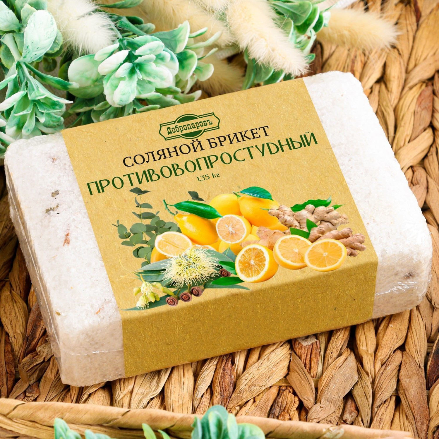 Соляной брикет "Противопростудный" эвкалипт, лимон, имбирь 1,35 кг "Добропаровъ" 7673806