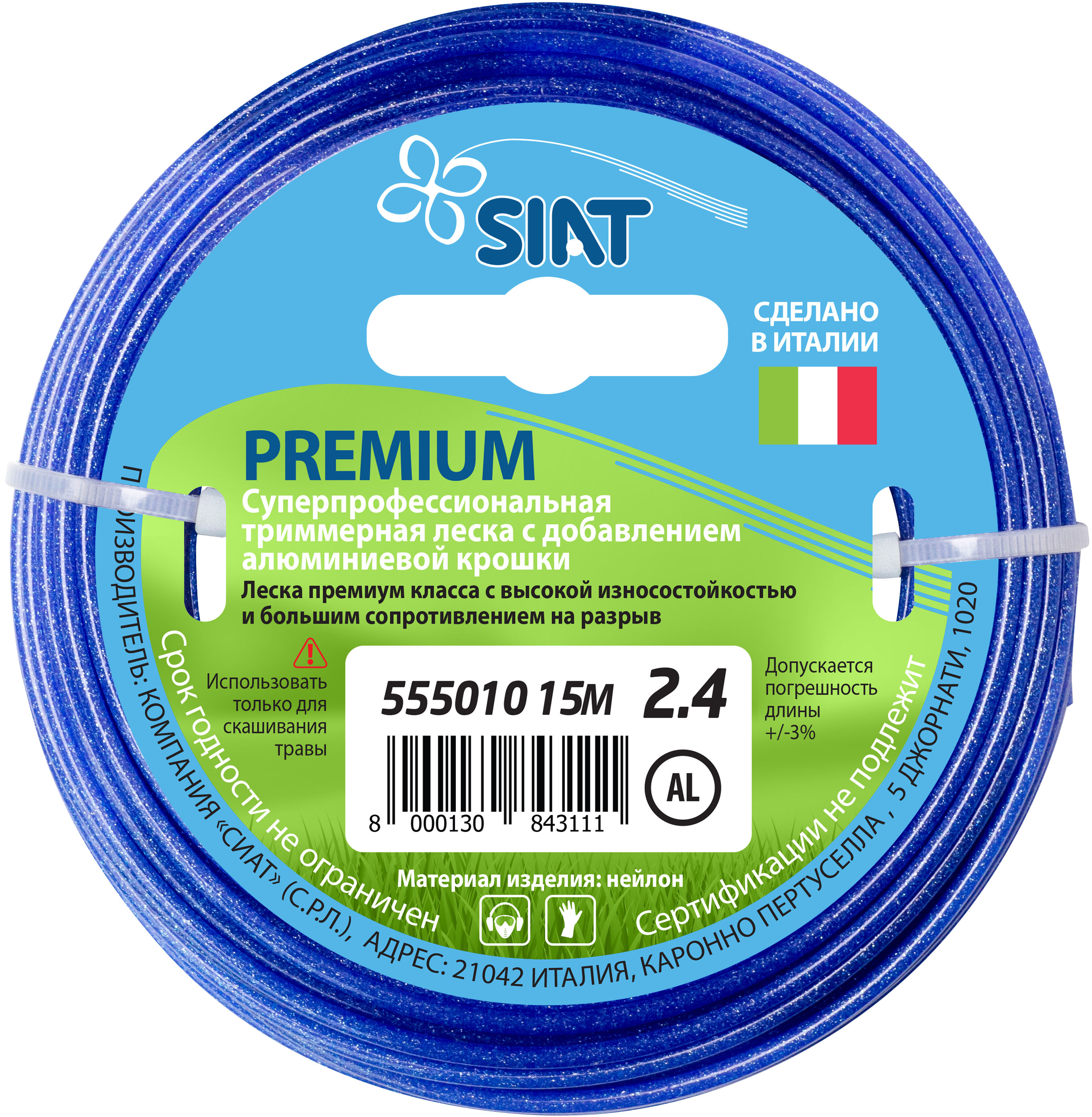 Леска 2,4мм круг с алюминиевой крошкой 15м синий арт.555010 PREMIUM SIAT *1/180
