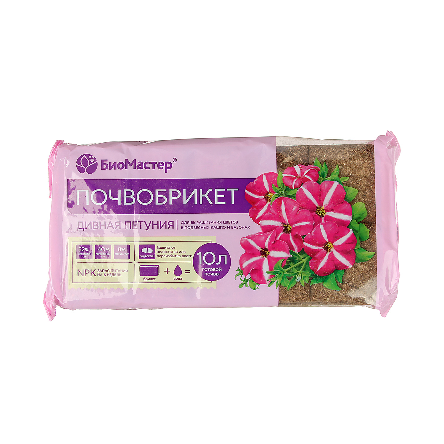Почвобрикет 10 л «Дивная петуния» Биомастер, с гидрогелем