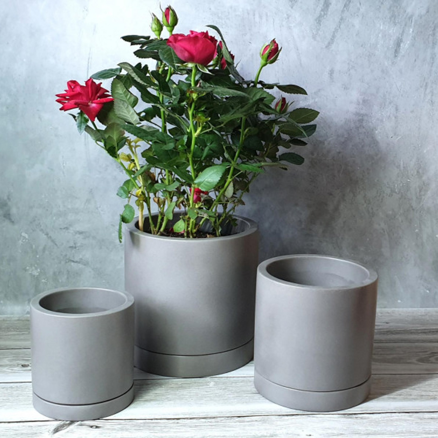 Кашпо гипсовое "Ката" 1,38л d верха 145мм h125мм с поддоном Серый ("VipSet") *3