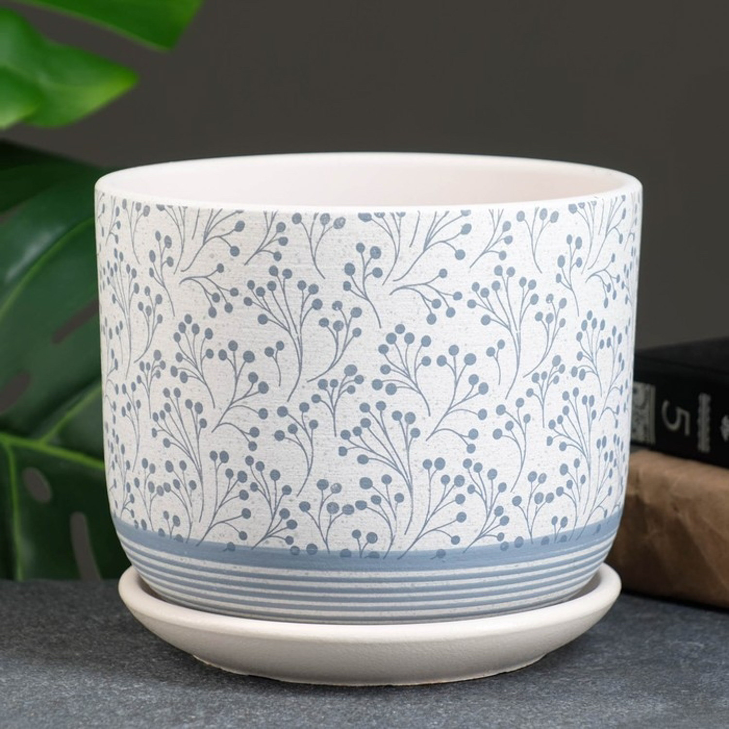 Кашпо керам. "Лён" 1,73л d верха 152мм h150мм с поддоном Белый бук №2 КС-Бук2-241-03 *9