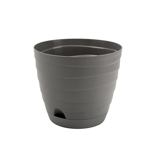 Кашпо пластм. "Бриз" 1,7л d верха 162мм h144мм с поддоном, прикорн.поливом Серый *1/10