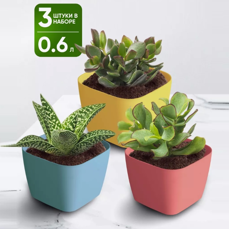 яяяКашпо пластм. "Фьюжн" НАБОР 3х0,6л 104х104мм h76мм С378КОЛ ("Мартика") *1/4