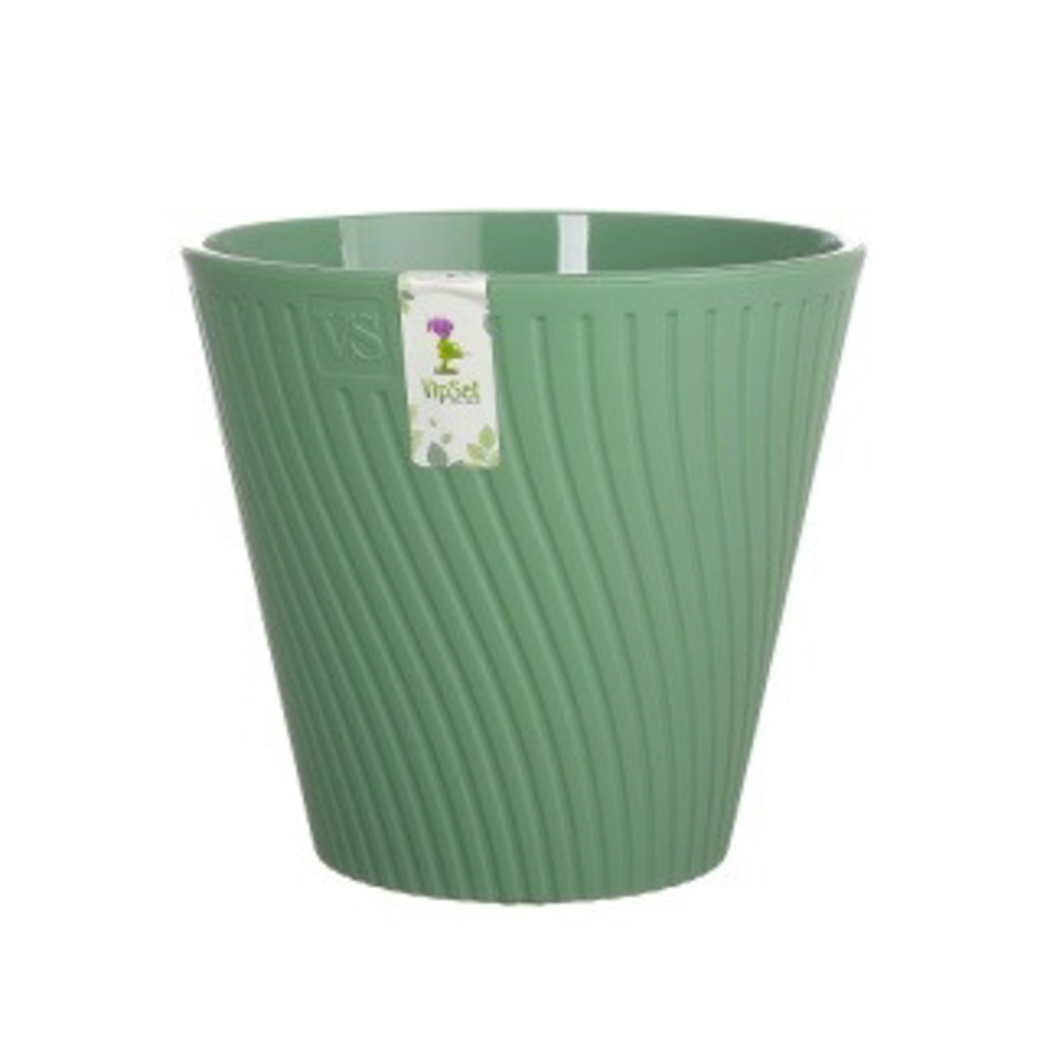 Кашпо пластм. "Луи" 1,2л d верха 140мм h129мм со вставкой Зеленый AML-1,2-08 ("VipSet") *1/30