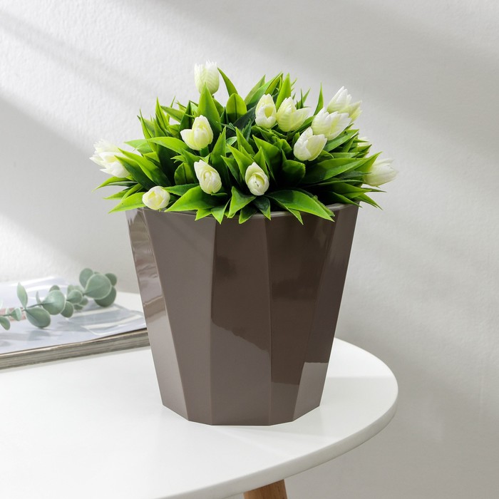 Кашпо пластм. "Палермо" 1,8л d верха 160мм h153мм со вставкой Корич-серое С316КСЕР("Мартика")*1/20