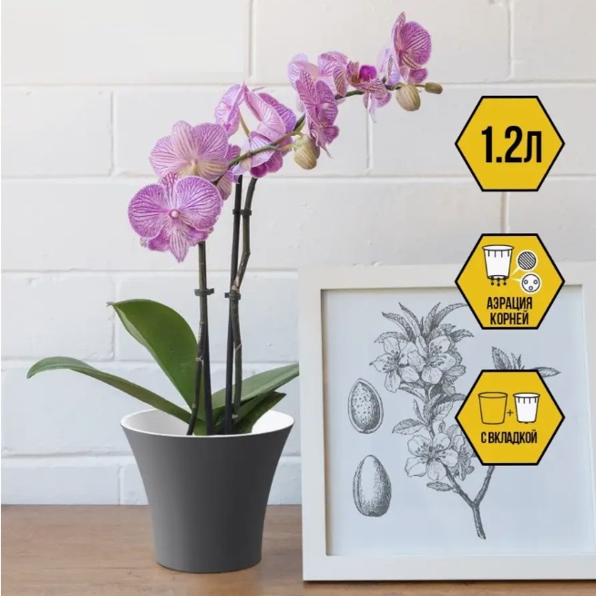 Кашпо пластм. "Сити" 1,2л d верха 150мм h130мм со вставкой Антрацит С15-12 *1/23