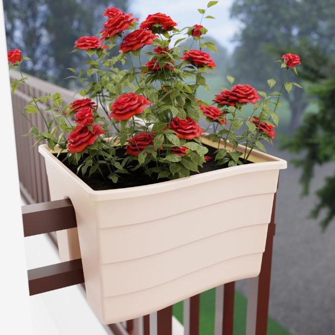 Ящик д/цветов пластм. на перила 30х29х20см 10л Бежевый М8912 ЗПИ "Альтернатива" *1/8