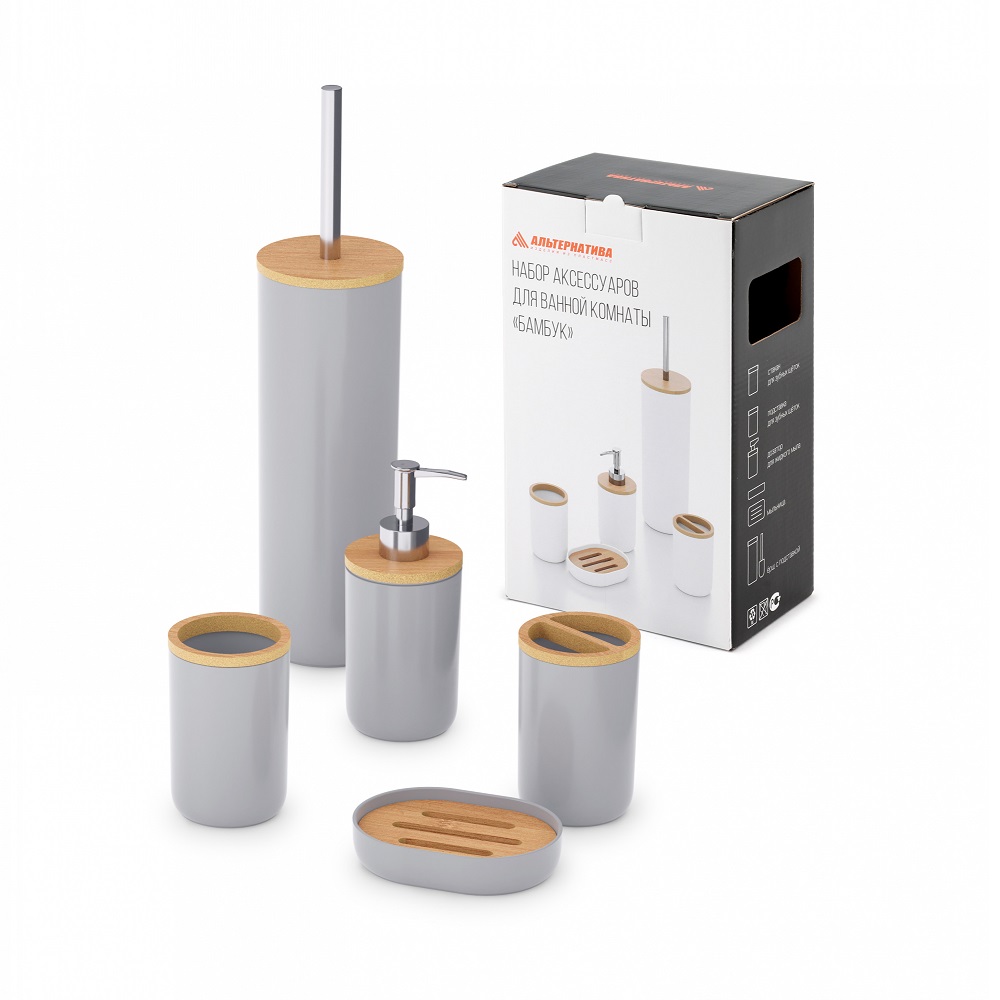 Набор д/ванной комнаты пластм. "Бамбук" 5пр. серый М8169 (Октябрьский) *1/4
