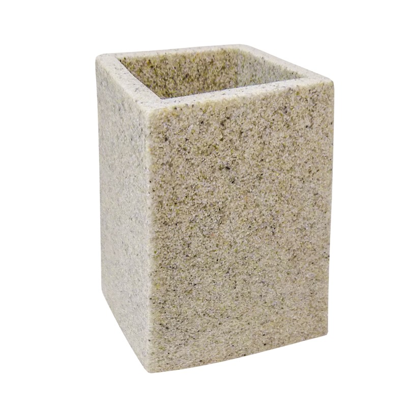 Стакан из коллекции «Светлый камень» изготовлен из современного синтетического материала полирезина. Этот материал адаптирован к влажной среде ванной комнаты, не требует специального ухода.