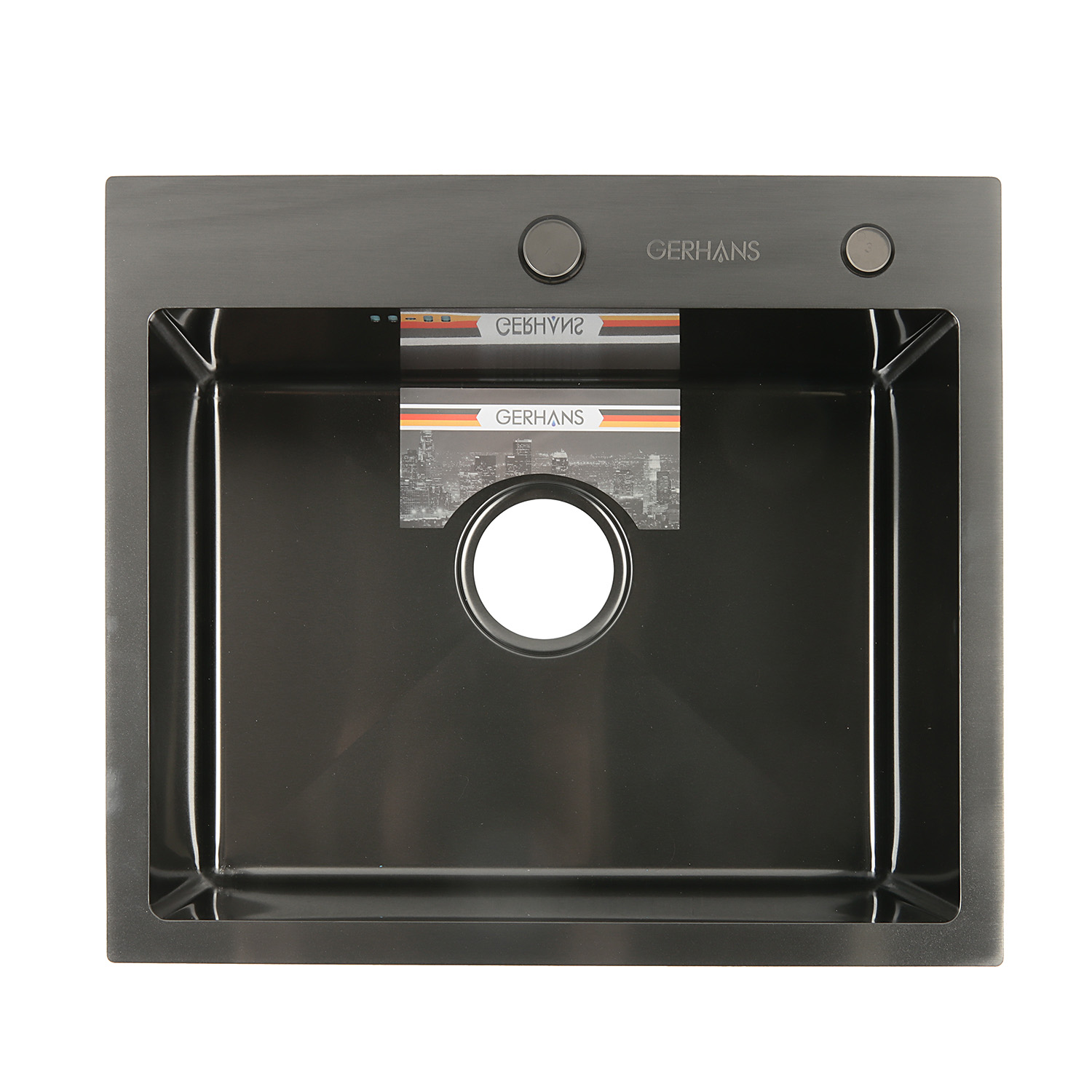 Мойка нерж. врезная 500х440х220мм графит, толщ.1мм, с сифоном, отв. под смеситель, GERHANS *1/5