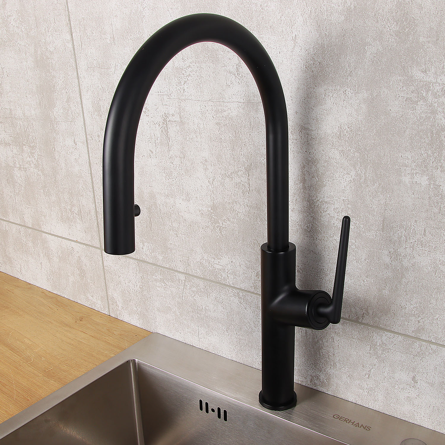 Смеситель для кухни Diadonna D60-0008BL высокий излив, выдвижная лейка, черный *1/6