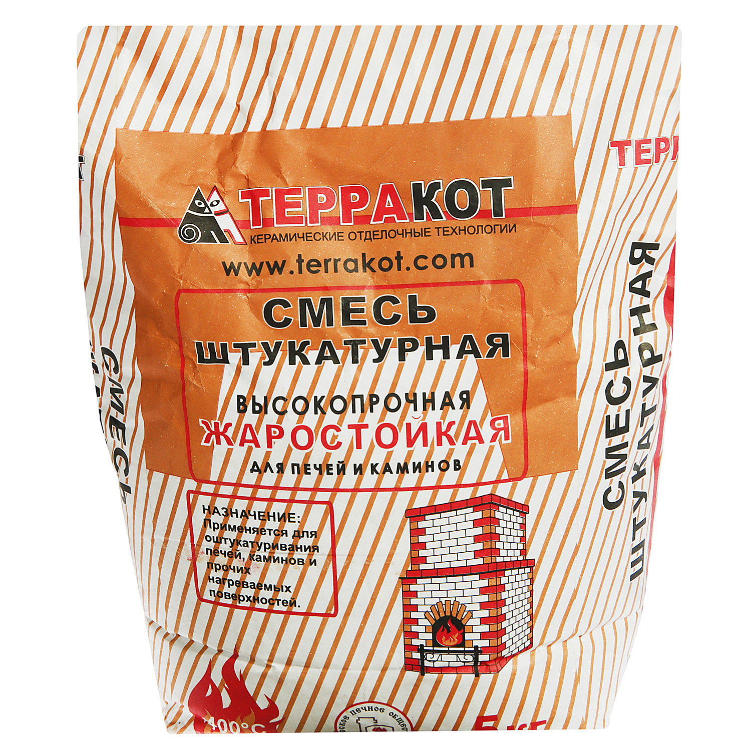 шт кгШтукатурка жаростойкая Терракот — экологически чистая, высокопластичная сухая смесь. Легко наносится и выравнивается. Обладает высокой силой сцепления (адгезией) с поверхностью. Сохраняет свои свойства при нагреве до 400 °С. Марка прочности на сжатие: М75.