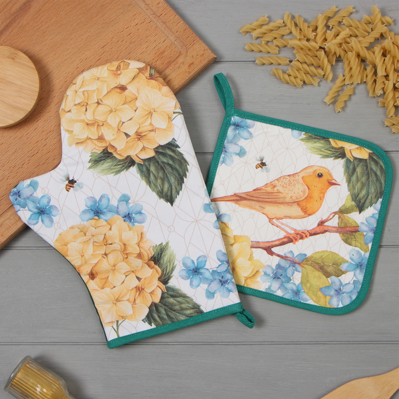 Набор прихваток Гортензии варежка-прихватка 20х28см, прихватка 19х19см 100% хлопок Этель *1