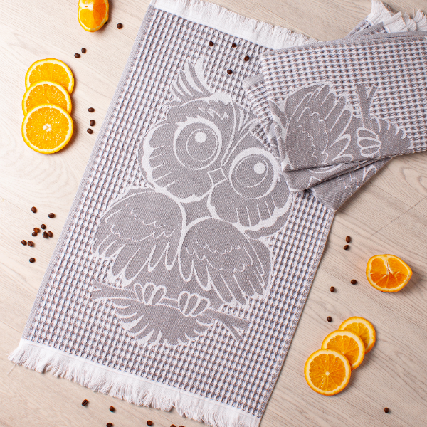 Полотенце вафельное жаккардовое 40*60см Совушка серый Casa Conforte *4