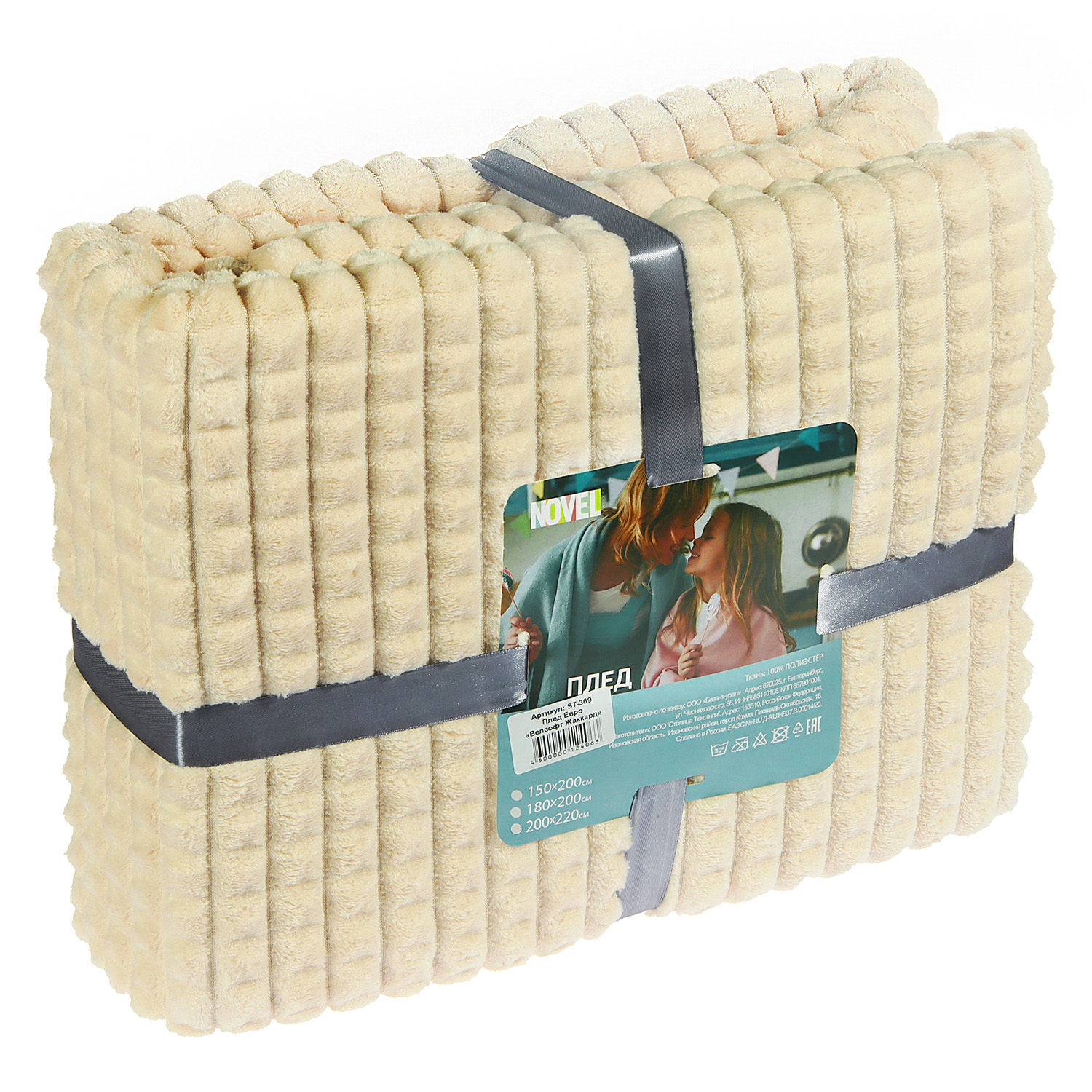 Плед 200*220см микрофибра жаккард клетка белый арт.369 NOVEL *1/8