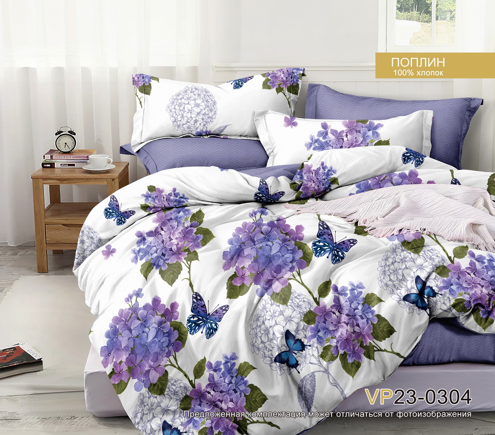 Постельное белье 1,5сп поплин на резинке Орхидея VP23-0304, наволочки 70*70 - 2шт *1/4