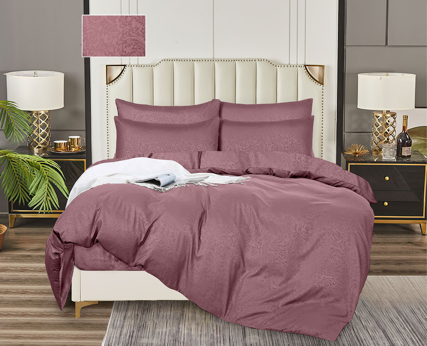 Постельное белье евро бамбук жаккрад Орхидея бордо, наволочки 70*70см - 2шт *1