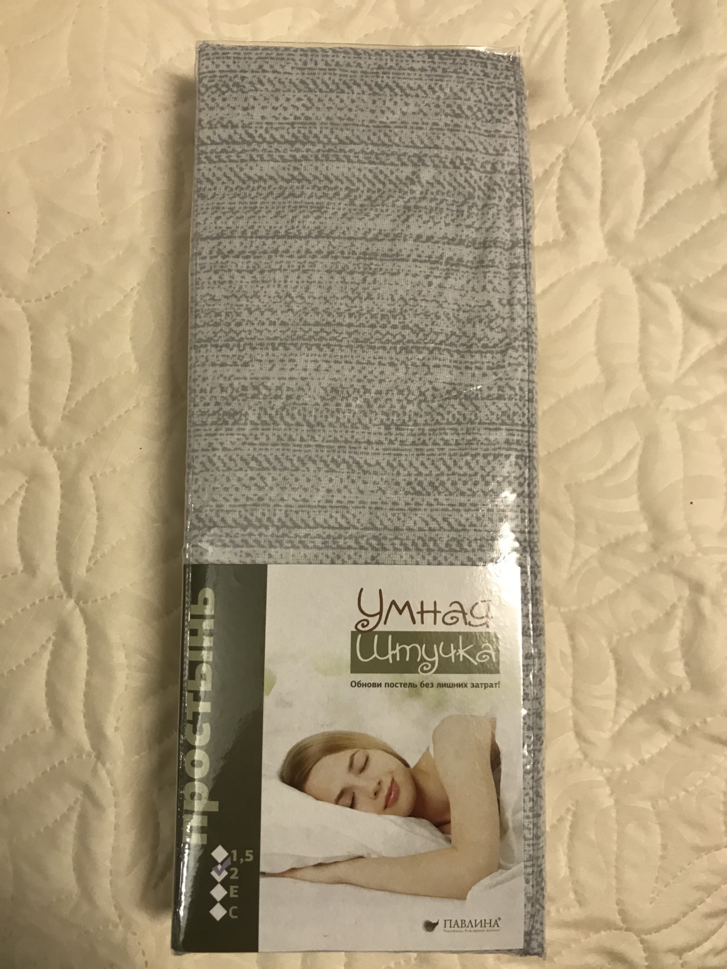 Простыня бязь 1,5сп серый Умная штучка (Павлина) *3/18