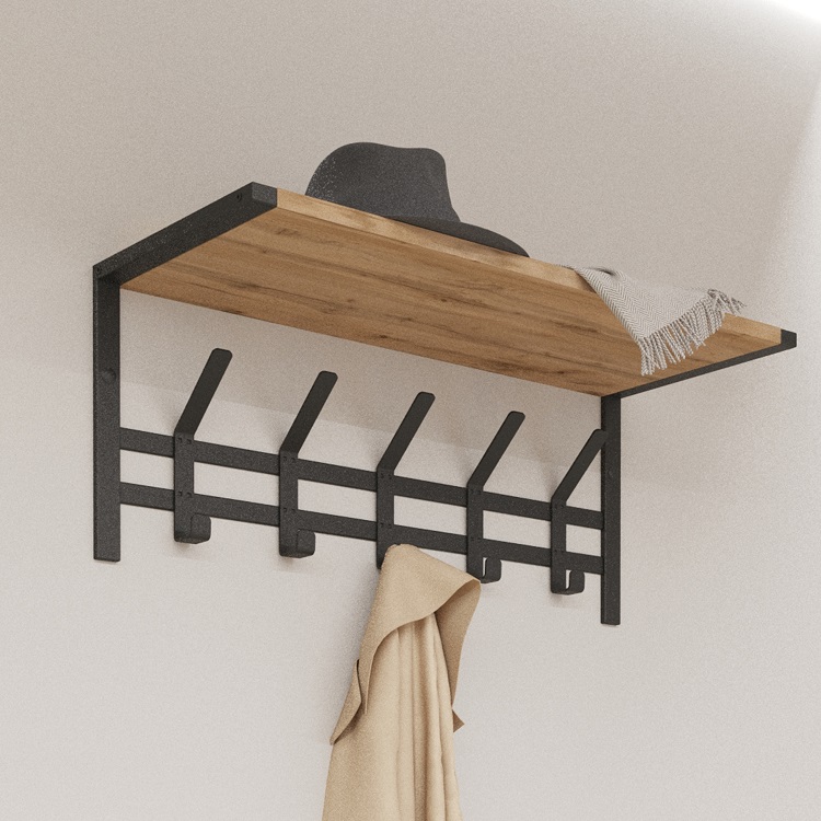 Вешалка настенная с полкой 670х270х270мм "Торонто 21Д" Черная ВСПТ21Д Ч ("ЗМИ") *1