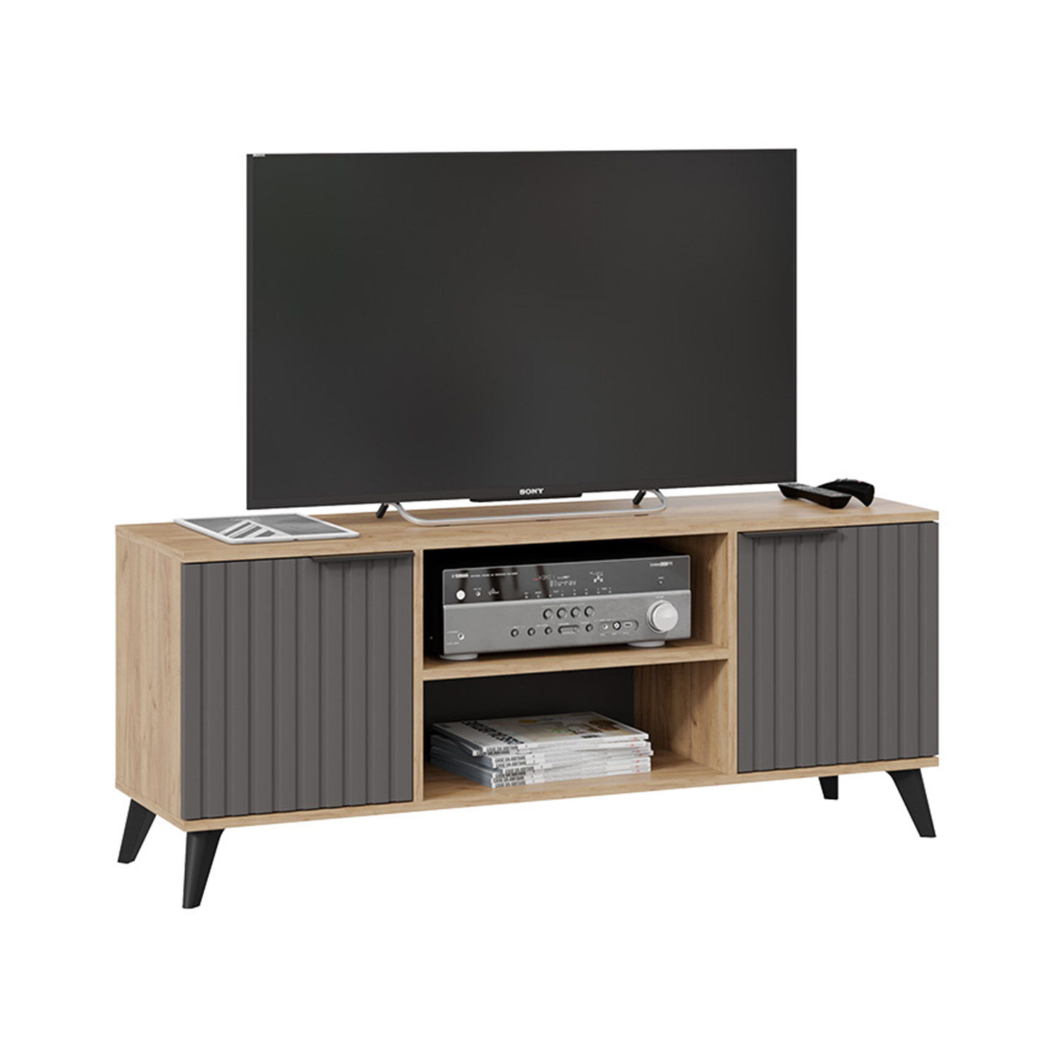 Тумба под ТВ 1335*374*452 Исп.2 Дуб крафт золотой/Графит матовый Хилтон ТриЯ*1