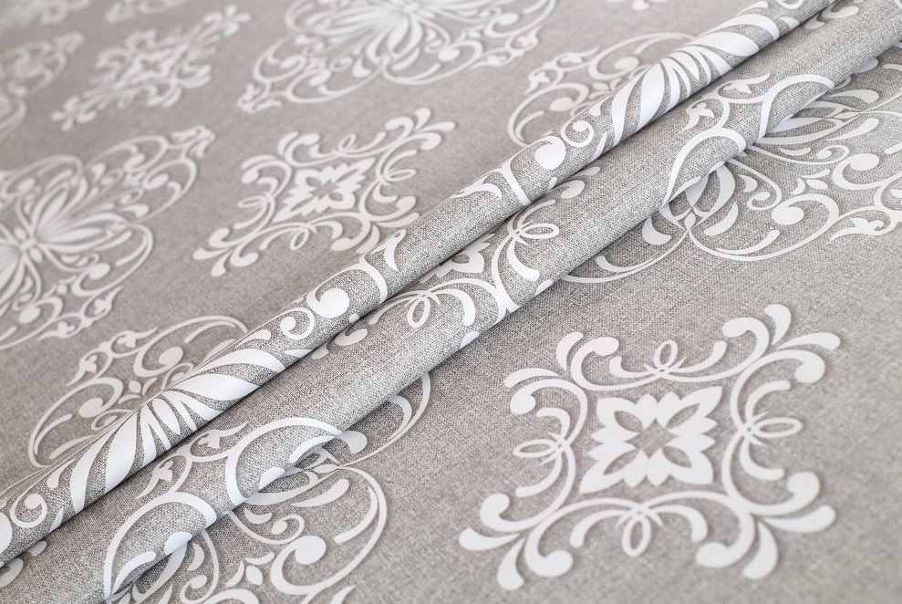 Клеенка на тканевой основе "Print" "Белые вензеля,узоры" серый фон шир.1,37м GW-21322 "Great Way"*20
